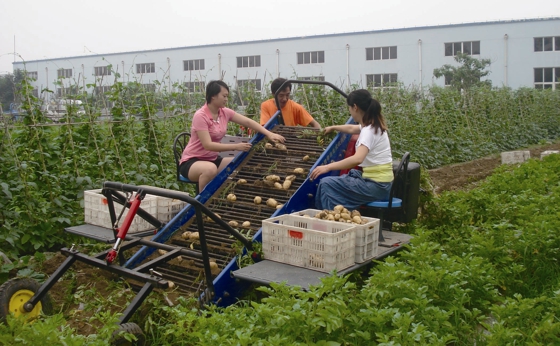 該機(jī)集國(guó)內(nèi)外多種薯類(lèi)收獲機(jī)械之長(zhǎng)與特點(diǎn),采用世界先進(jìn)的液壓行走無(wú)級(jí)變速裝置,操作方便,消耗動(dòng)力小;人工乘坐分類(lèi)裝箱,揀拾及時(shí),勞動(dòng)強(qiáng)度小。適用于土豆、地瓜、大姜等薯類(lèi)作物收獲。